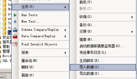 2、選中Lygl數(shù)據(jù)庫,然后按右鍵—》任務(wù)-》導(dǎo)入數(shù)據(jù)
