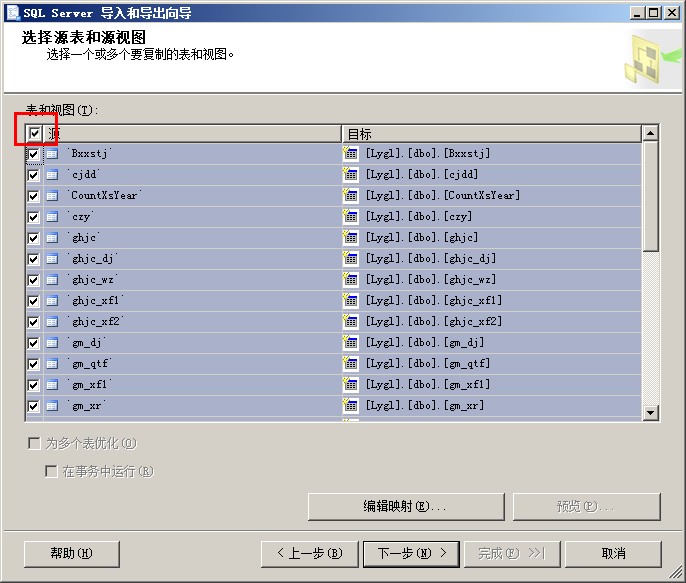勾選第一個(gè)方框就可以了,SQLSERVER會(huì)自動(dòng)幫你勾選ACCESS數(shù)據(jù)庫中的所有表格