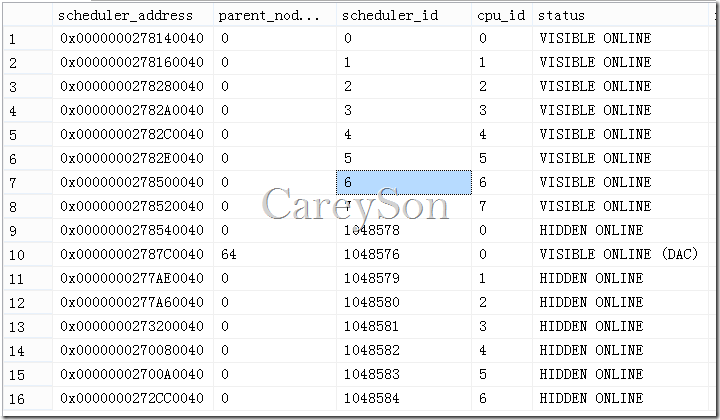 SQL Server中每一個邏輯CPU都有一個與之對應(yīng)的Scheduler,只有拿到Scheduler所有權(quán)的任務(wù)才允許被執(zhí)行,Scheduler可以看做一個隊SQLOS來說的邏輯CPU。您可以通過sys.dm_os_schedulers這個DMV來看系統(tǒng)中所有的Scheduler,如圖1所示。