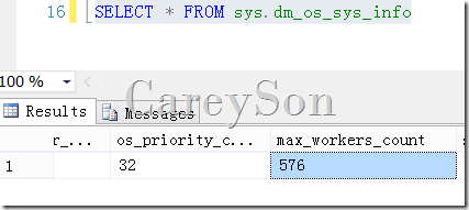 如果是自動配置,那么SQL Server的最大工作線程數(shù)量可以在sys.dm_os_sys_info中看到,如圖5所示。
