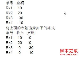 3)可以看出,首先select中應(yīng)該有三個字段,并且將數(shù)據(jù)大于0的放到收入中,那么另一個為0,并且將小于0的放到支出里面,另一個為0,下面我們寫實(shí)現(xiàn)的SQL語句: