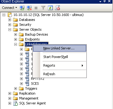 首先打開SQL Server Management Studio, 展開到Server Objects-->Linked Server, 右鍵單擊該項(xiàng)選擇New linked Server輸入Link Server的信息。