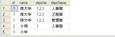 --此時已將員工表所存的IDS分別與部門相關(guān)聯(lián),下面需要將此集合中的deptName聚合成一個記錄