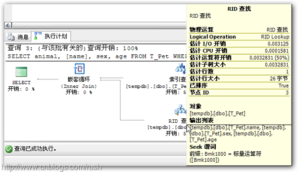通過上面的直方圖,我們知道SQL Server估計bitValue = 0數(shù)據(jù)行行有約19989行,而bitValue = 1估計約21;SQL Server優(yōu)化器根據(jù)數(shù)據(jù)量估算值,采取不同的執(zhí)行計劃,從而到達最優(yōu)的查詢性能,由于bitValue = 0數(shù)據(jù)量大,SQL Server只能提供掃描聚集索引獲取相應(yīng)數(shù)據(jù)行,而bitValue = 1實際數(shù)據(jù)行只有10行,SQL Server首先通過鍵查找bitValue = 1的數(shù)據(jù)行,然后嵌套循環(huán)聯(lián)接到聚集索引獲得余下數(shù)據(jù)行。