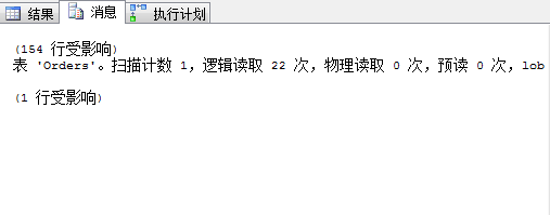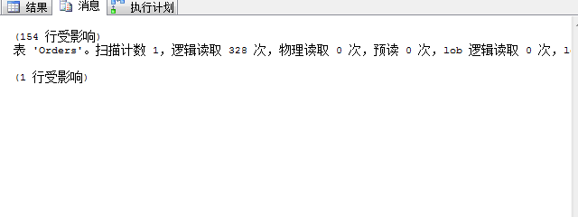 可以看到查詢條件和4.3完全一致,我們強制使用了IX_OrderDate,返回記錄數(shù)和4.3完全一致,但邏輯讀達(dá)到了328次,返回行數(shù)154行