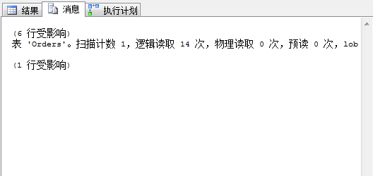 可以看到成功使用了在OrderDate上面建立的索引IX_OrderDate,邏輯讀次數(shù)為14,返回行數(shù)6行