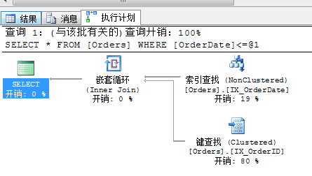 4.4 執(zhí)行 select * from Orders with(index=IX_OrderDate) where OrderDate='1997-1-1' 的查詢開銷及查詢計劃