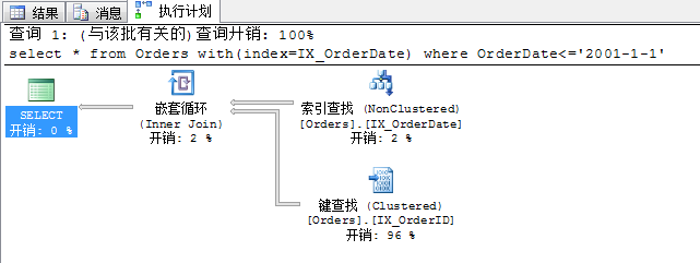 4.5 執(zhí)行 select * from Orders with(index=IX_OrderDate) where OrderDate='2001-1-1' 查詢開銷及查詢計劃