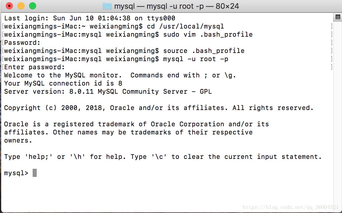 下載mysql。我下載的是:mysql-8.0.11-macos10.13-x86_64.dmg