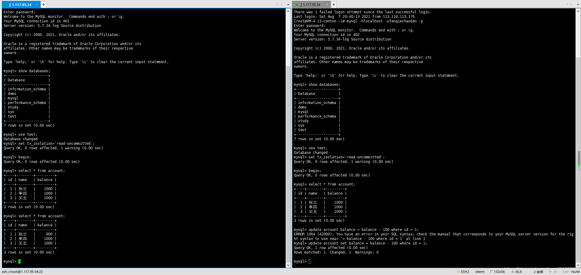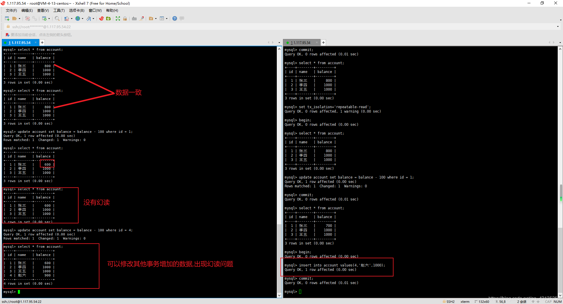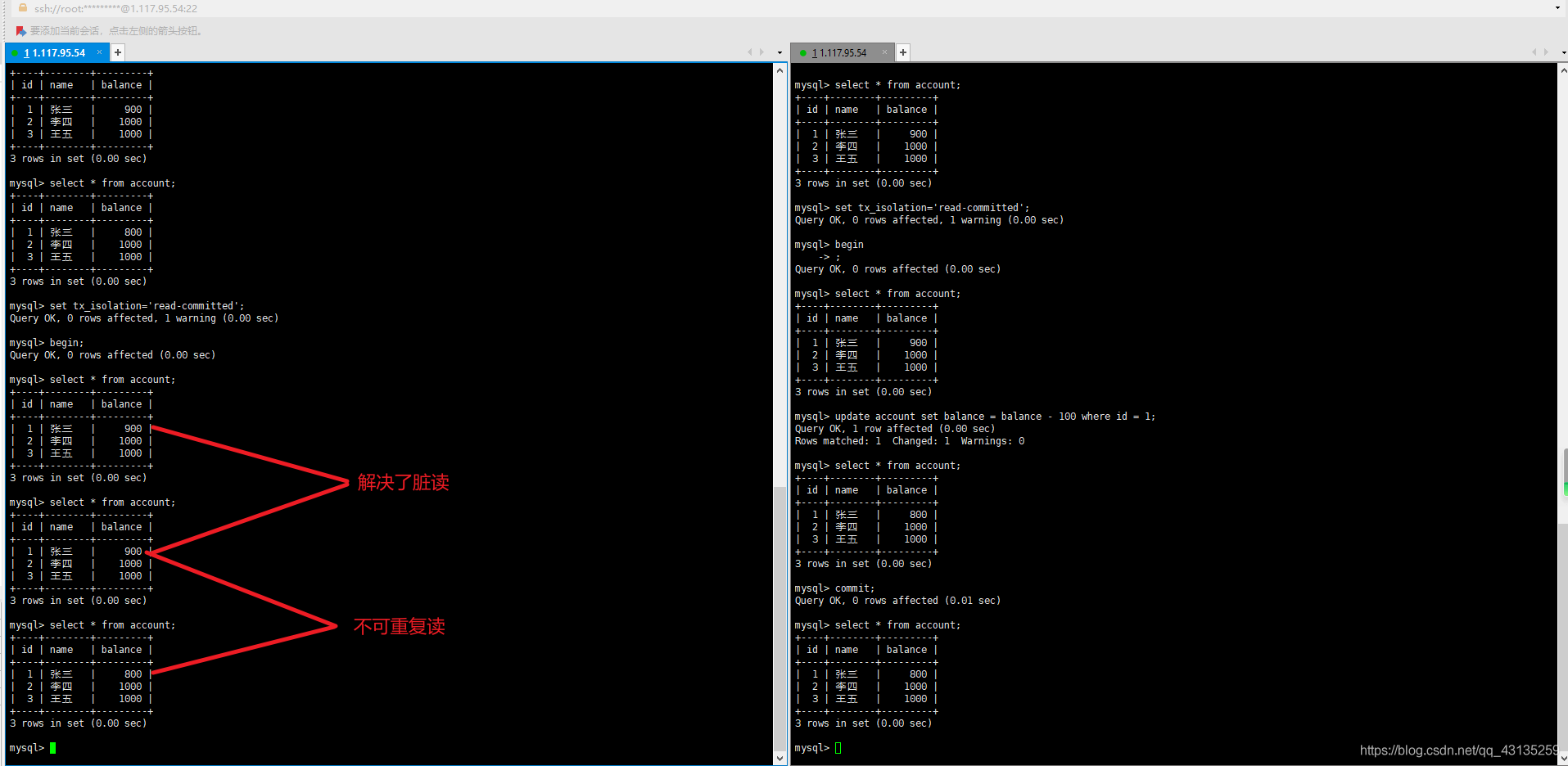 2.1 設(shè)置隔離級(jí)別讀已提交:set tx_isolation=‘read-committed';
