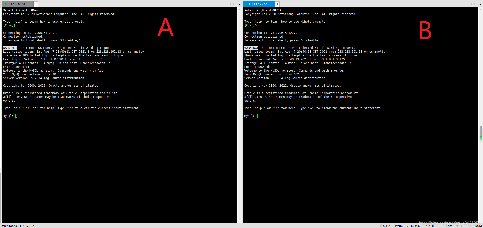 4.1 客戶端A和客戶端B各開啟一個(gè)事務(wù),