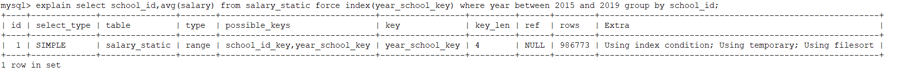 select school_id,avg(salary) from salary_static force index(year_school_key) where year between 2015 and 2019 group by school_id;