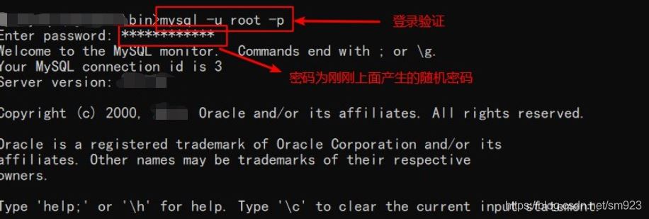 5.登錄驗(yàn)證,mysql是否安裝成功!(要注意上面產(chǎn)生的隨機(jī)密碼,不包括前面符號(hào)前面的空格,否則會(huì)登陸失敗),如果和下圖所示一樣,則說(shuō)明你的mysql已經(jīng)安裝成功!注意,,一定要先開啟服務(wù),不然會(huì)登陸失敗,出現(xiàn)拒絕訪問(wèn)的提示符!??!