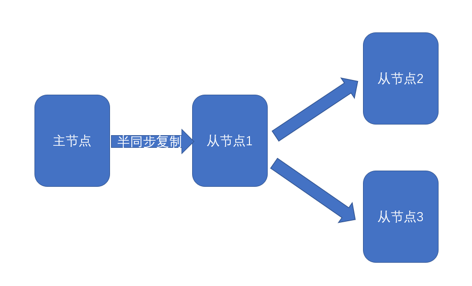 - 級聯(lián)復制:主節(jié)點將數(shù)據(jù)同步到一個從節(jié)點,其他的從節(jié)點在向從節(jié)點復制數(shù)據(jù)