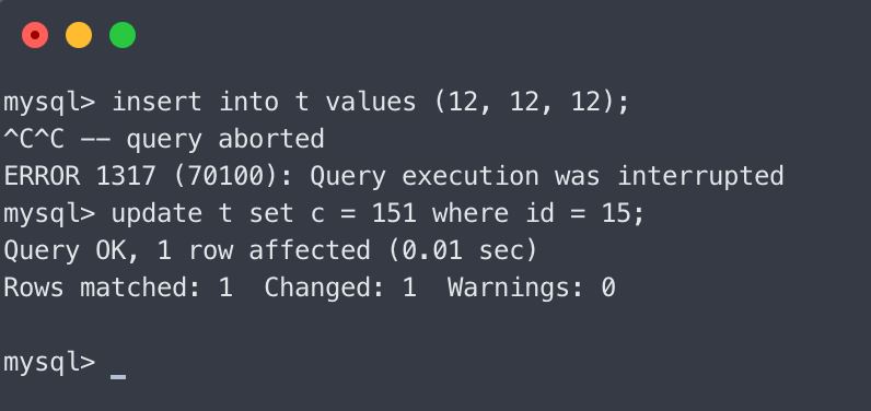 此時(shí)在另一個(gè) Session 執(zhí)行 SQL,答案顯而易見(jiàn),是 id = 12 不可以插入,而 id = 15 是可以更新的。