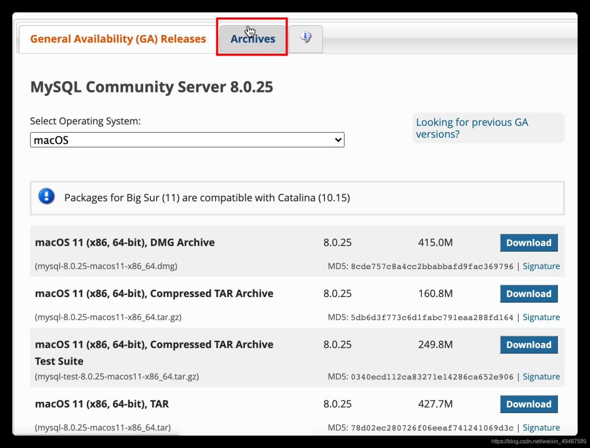 下載地址:https://dev.mysql.com/downloads/mysql/