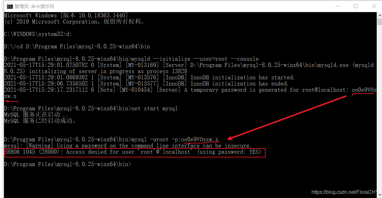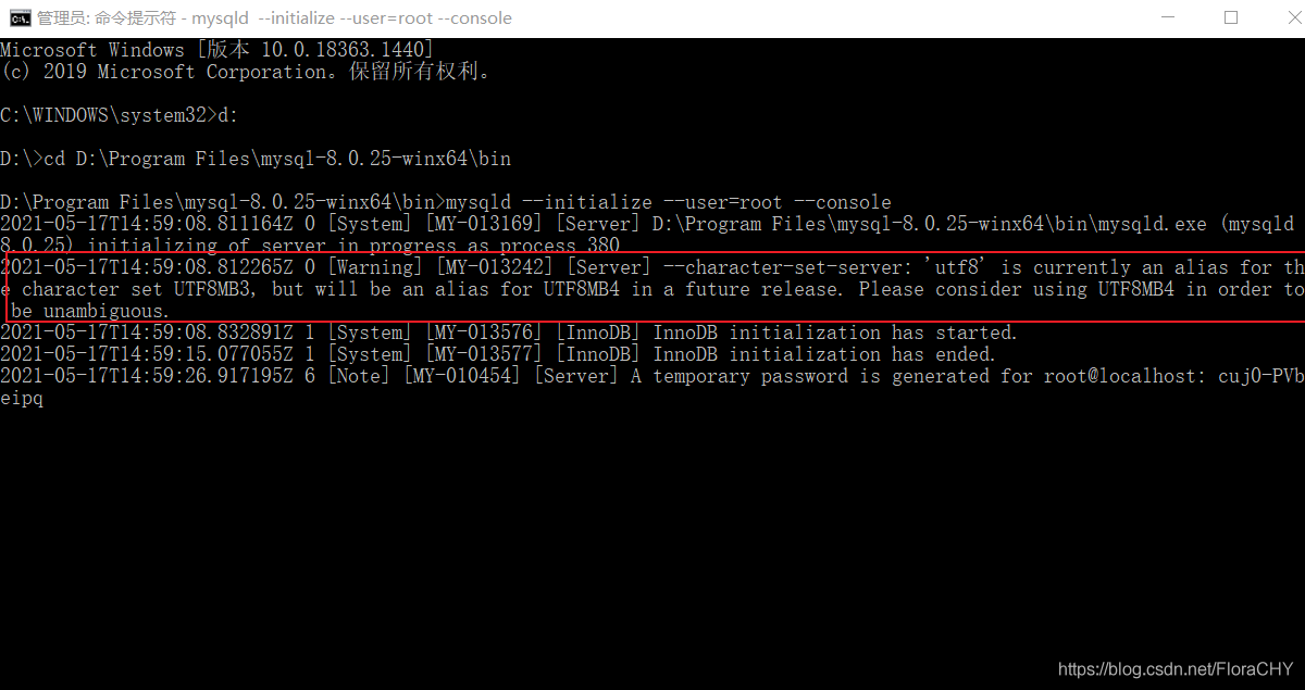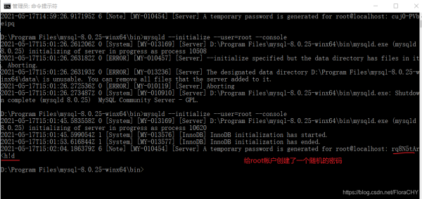 執(zhí)行命令:mysqld --initialize --user=root --console