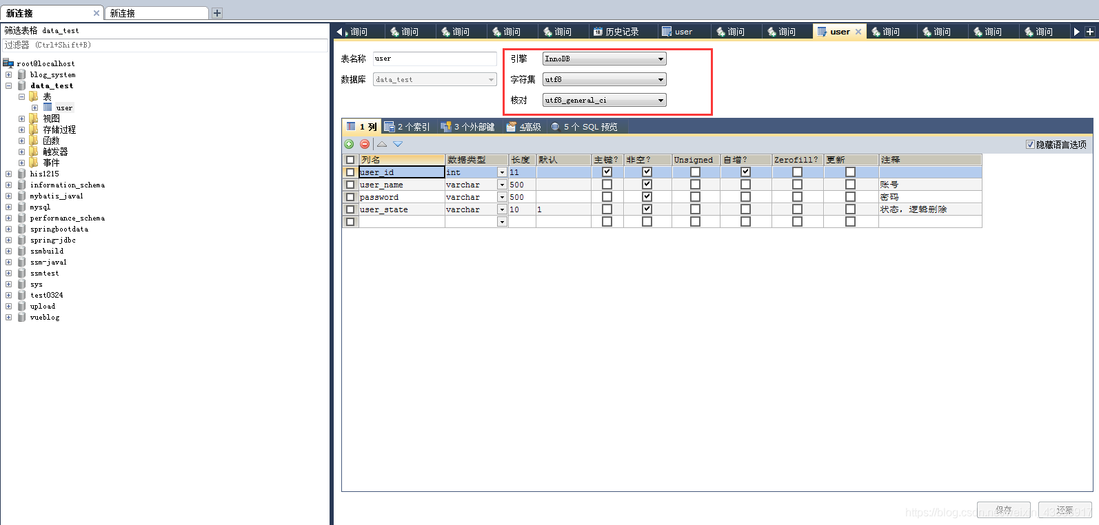 `user_state` varchar(10) CHARACTER SET utf8 NOT NULL DEFAULT '1' COMMENT '狀態(tài),邏輯刪除',