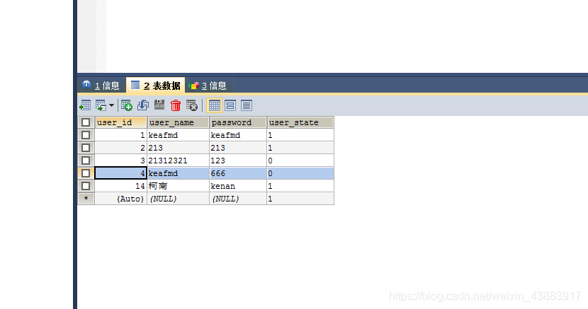 insert into `user`(`user_id`,`user_name`,`password`,`user_state`) values (1,'keafmd','keafmd','1'),(3,'21312321','123','0'),(11,'213','213','1'),(12,'keafmd','666','0');