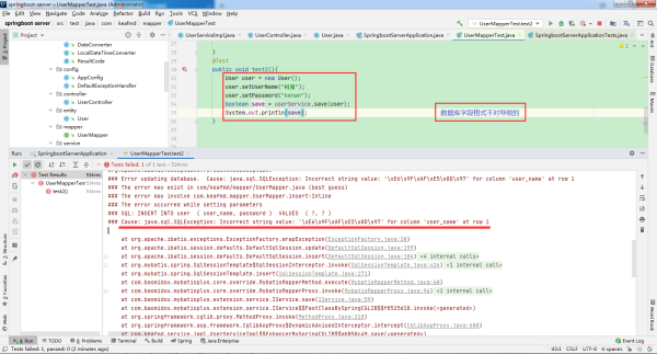 Cause: java.sql.SQLException: Incorrect string value: ‘\xE6\x9F\xAF\xE5\x8D\x97' for column ‘user_name' at row 1