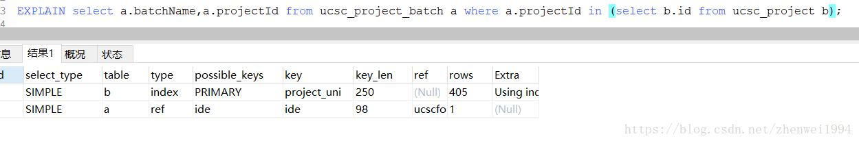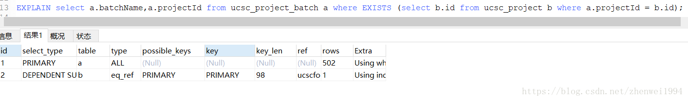 (2)EXISTS會(huì)對(duì)外查詢(xún)的表ucsc_project_batch 進(jìn)行循環(huán)匹配,執(zhí)行ucsc_project_batch.length次,其中子查詢(xún)可以使用索引,外查詢(xún)?nèi)頀呙?/p>