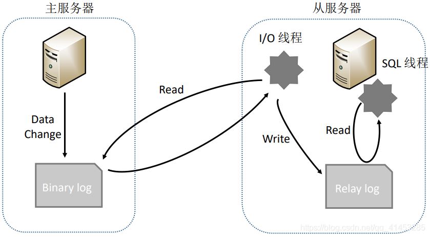 - 從服務(wù)器調(diào)用I/O線程讀取主服務(wù)器的Bin log,并且寫入到自己的Relay log中,再調(diào)用SQL線程從Relay log中解析數(shù)據(jù),從而同步到自己的數(shù)據(jù)庫中