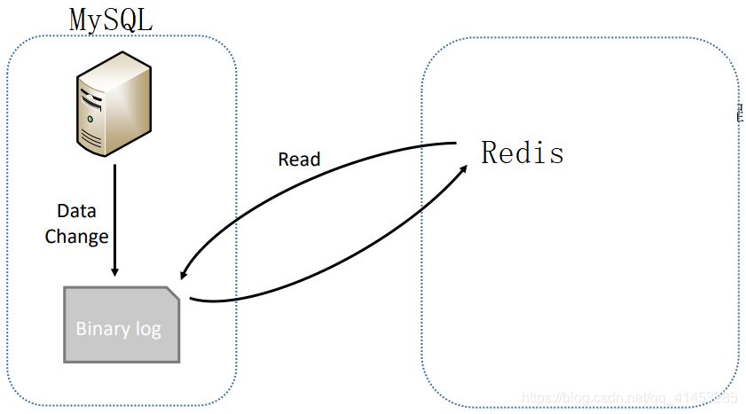 - 我們方案2也是如此,就是在概念上把主服務(wù)器改為MySQL,把從服務(wù)器改為Redis而已(如下圖所示),當(dāng)MySQL中有數(shù)據(jù)寫入時,我們就解析MySQL的Bin log,然后將解析出來的數(shù)據(jù)寫入到Redis中,從而達(dá)到同步的效果