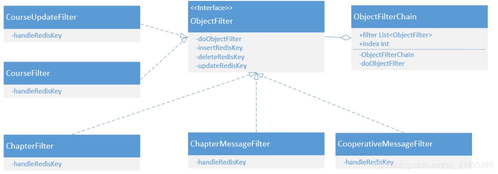 MySQL表的同步,采用責(zé)任鏈模式,每張表對應(yīng)一個Filter。例如zvsync中要用到的類設(shè)計如下: