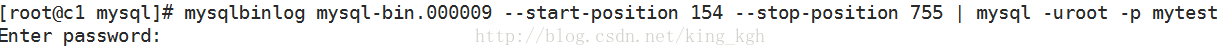 mysqlbinlog mysql-bin.000009 --start-position 154 --stop-position 755 | mysql -uroot -p mytest