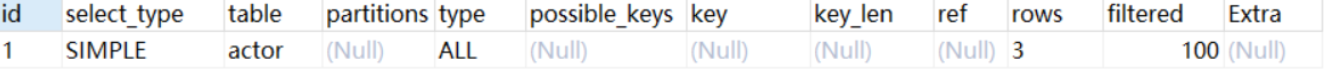 mysql> explain select * from actor where id > 1;