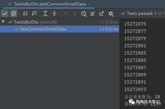 10 條數(shù)據(jù)量用時(shí) 1 秒