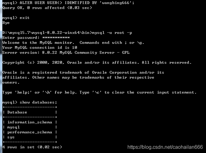到這里就是我遇到的一些問題,之后你就可以重新退出CMD,再重新進入CMD,按照正確的指令進入你的mysql數(shù)據(jù)庫了,開始的數(shù)據(jù)庫操作了。
