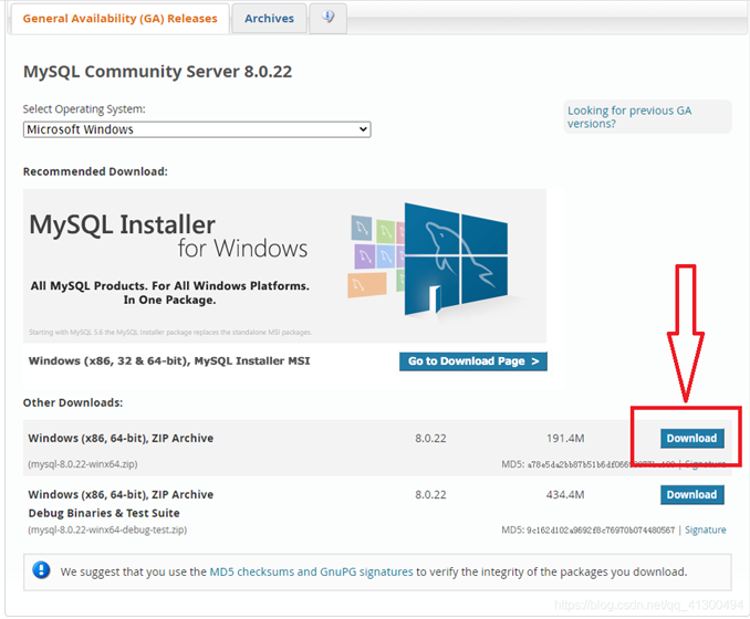 官網(wǎng)下載地址:https://dev.mysql.com/downloads/mysql/