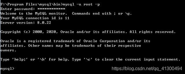 如果cmd還在mysql-bin目錄下,在代碼行里輸入下面代碼
