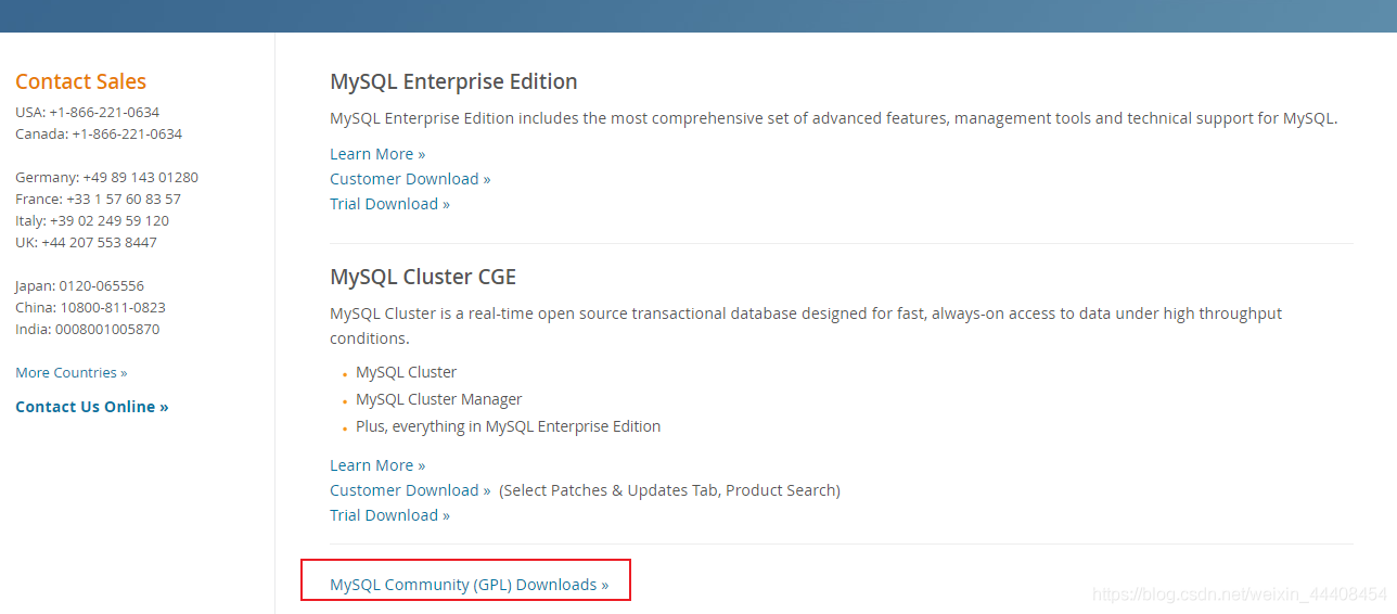 1.進(jìn)入MySQL官網(wǎng)下載,或直接點(diǎn)擊下載,如下圖所示: