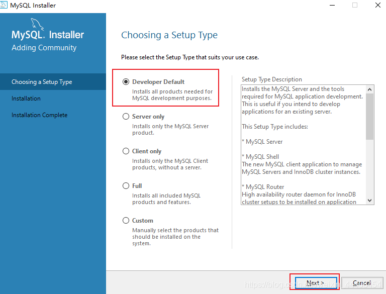 7. 作為一般開發(fā)人員選擇"Developer Default",并點(diǎn)擊"Next"