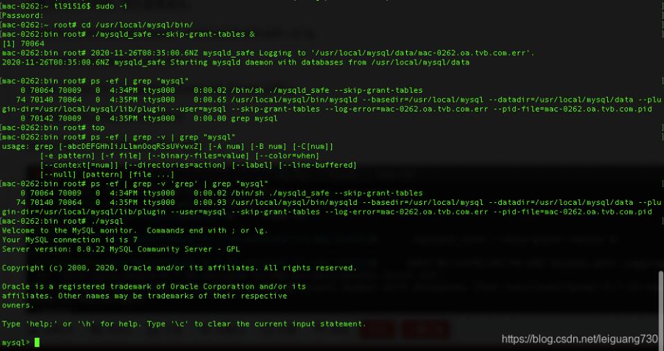 Mac 最新版 MySQL 8.0.22 找回密碼大全