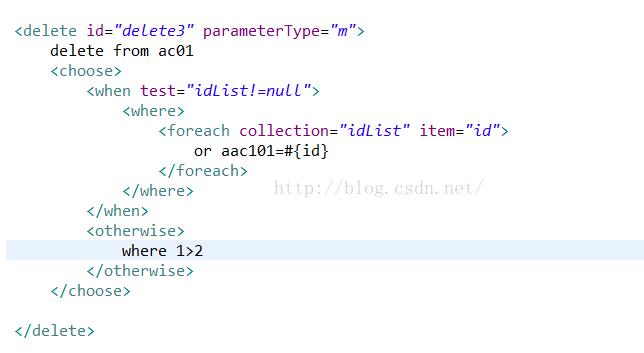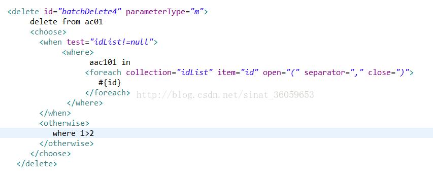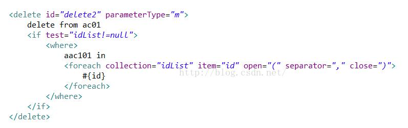 利用第一種刪除語句在mybatis中的mapping.xml中進行拼接: