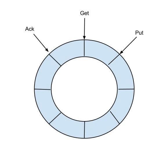 支持多種存儲(chǔ)模式,比如Memory內(nèi)存模式。采用內(nèi)存環(huán)裝的設(shè)計(jì)來保存消息,借鑒了Disruptor的RingBuffer的實(shí)現(xiàn)思路。 RingBuffer設(shè)計(jì):