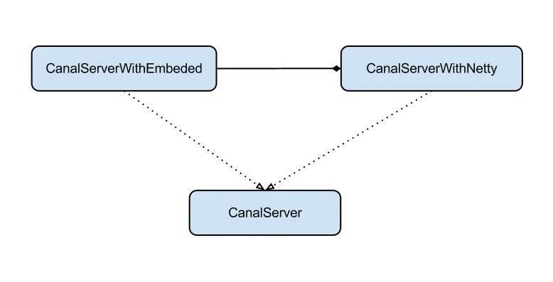 server代表了一個(gè)Canal運(yùn)行實(shí)例,為了方便組件化使用,特意抽象了Embeded(嵌入式)/Netty(網(wǎng)絡(luò)訪問)的兩種實(shí)現(xiàn)。