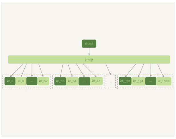 一般分庫分表的場景,就是要把一個邏輯上的大表分散到不同的數(shù)據(jù)庫實例上。比如。將一個大 表ht,按照字段f,拆分成1024個分表,然后分布到32個數(shù)據(jù)庫實例上。
