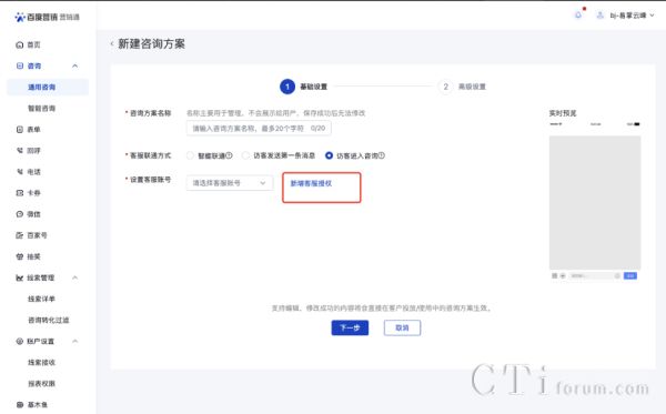 4、填寫完咨詢方案名稱等信息后,選擇新增客服授權(quán)。