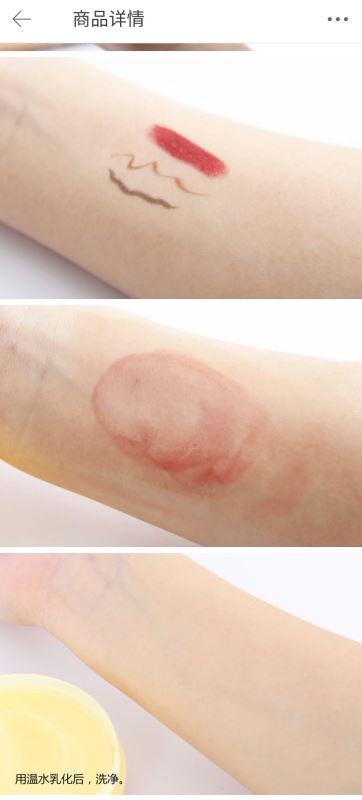 需要提到的一點是,當商品使用后有明顯變化時,一定要附上前后對比圖,視覺的強烈沖擊是一個很能擊中用戶的點。比如:卸妝水、素顏霜、口紅、眼影、腮紅等等。