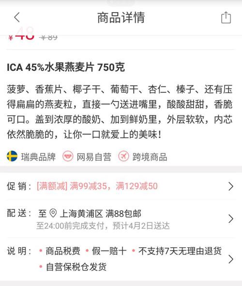 比如網(wǎng)易考拉,它在商品詳情頁的底部會用一整屏的內(nèi)容來凸顯他們對用戶的承諾:正品保障,假一賠十。非常的簡單粗暴,但又讓人信服。
