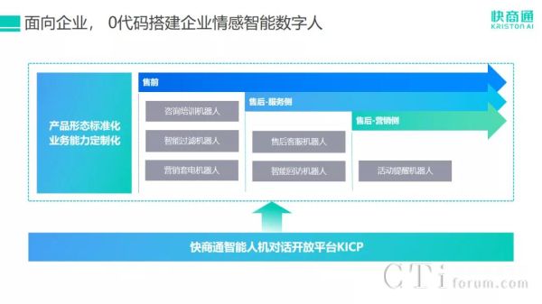 例如,現(xiàn)在基于KICP打造的快商通智能營銷套電機器人,能為企業(yè)提供自助式、擬人化的客戶接待與營銷套電服務。機器人可獨立完成接待獲聯(lián)工作擬人式對話,能夠精準識別訪客的咨詢意圖,主動答疑,智能匹配最優(yōu)話術,通過擬人化多輪對話,挖掘訪客需求,高效引導訪客留聯(lián);可自由設定留聯(lián)節(jié)點和留聯(lián)話術,做到千人千面,成為有感情的營銷套電機器人。