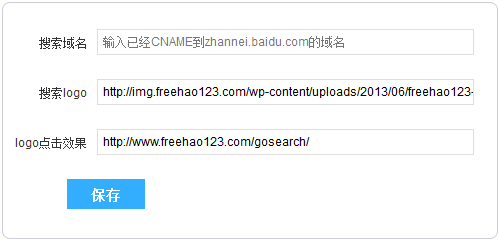 在以下位置填寫已備案并正確的cname到zhannei.baidu.com的域名,建議填寫新的二級(jí)域名以免影響您站點(diǎn)的已有服務(wù)。如您填寫未經(jīng)cname的域名,會(huì)導(dǎo)致從搜索框跳轉(zhuǎn)至結(jié)果頁(yè)時(shí)出錯(cuò)。