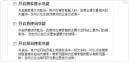 10、百度站內(nèi)搜索的“高級(jí)功能”中可以為搜索設(shè)置熱搜詞提示、劃詞搜索等等。