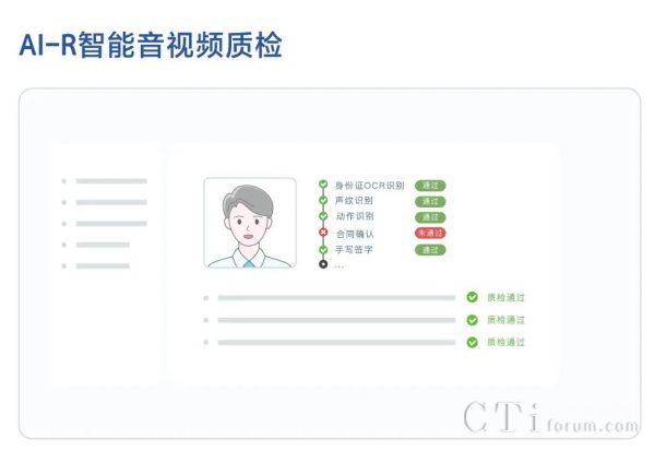 同時,以AI算法驅(qū)動,對每個流程節(jié)點進行實時視頻質(zhì)檢和音頻質(zhì)檢,確保視頻全程為客戶本人、真人、中途未離場、風險揭露均已傳達給客戶、客戶同意相關(guān)風險揭示問題等,通過0時延質(zhì)檢,更高效的保障服務(wù)過程合規(guī),切實規(guī)范營銷過程。助力金融機構(gòu)轉(zhuǎn)變監(jiān)督方式,使工作重心從事后懲處轉(zhuǎn)向事前、事中監(jiān)督。