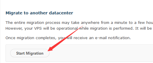 點(diǎn)擊左側(cè)菜單"Migrate to another DC",我們可以看到下圖所示,準(zhǔn)備選擇需要更換的機(jī)房。