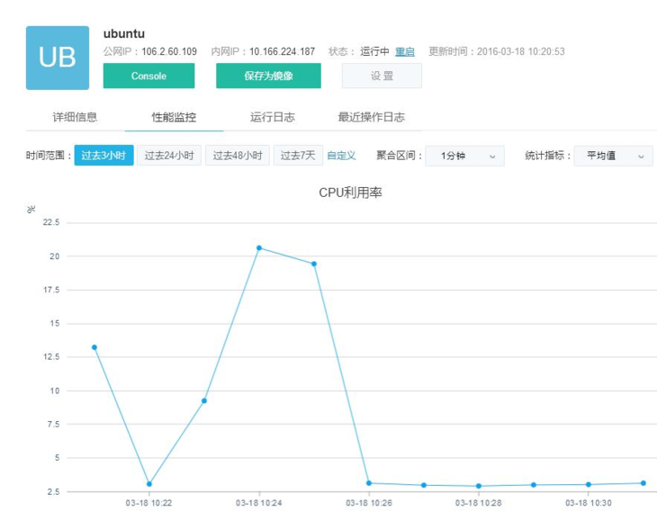 點擊容器列表中的容器名稱,可進入容器詳情,查看容器的詳細信息。包含容器的基本信息、創(chuàng)建自定義鏡像、性能監(jiān)控、最近日志與 Console 等。具體如下圖所示: